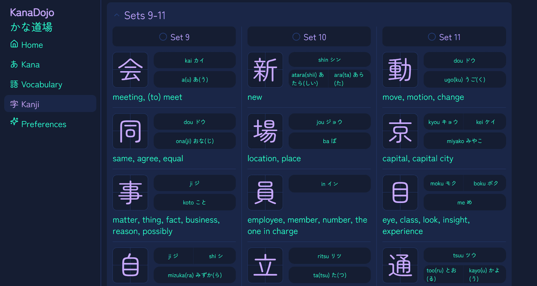 KanaDojo is an engaging web-based Japanese learning platform that makes mastering Hiragana, Katakana, Kanji, and Vocabulary fun and intuitive. Built with a focus on aesthetics, customization, and effective learning, KanaDojo provides an immersive training environment for Japanese language learners at all levels.